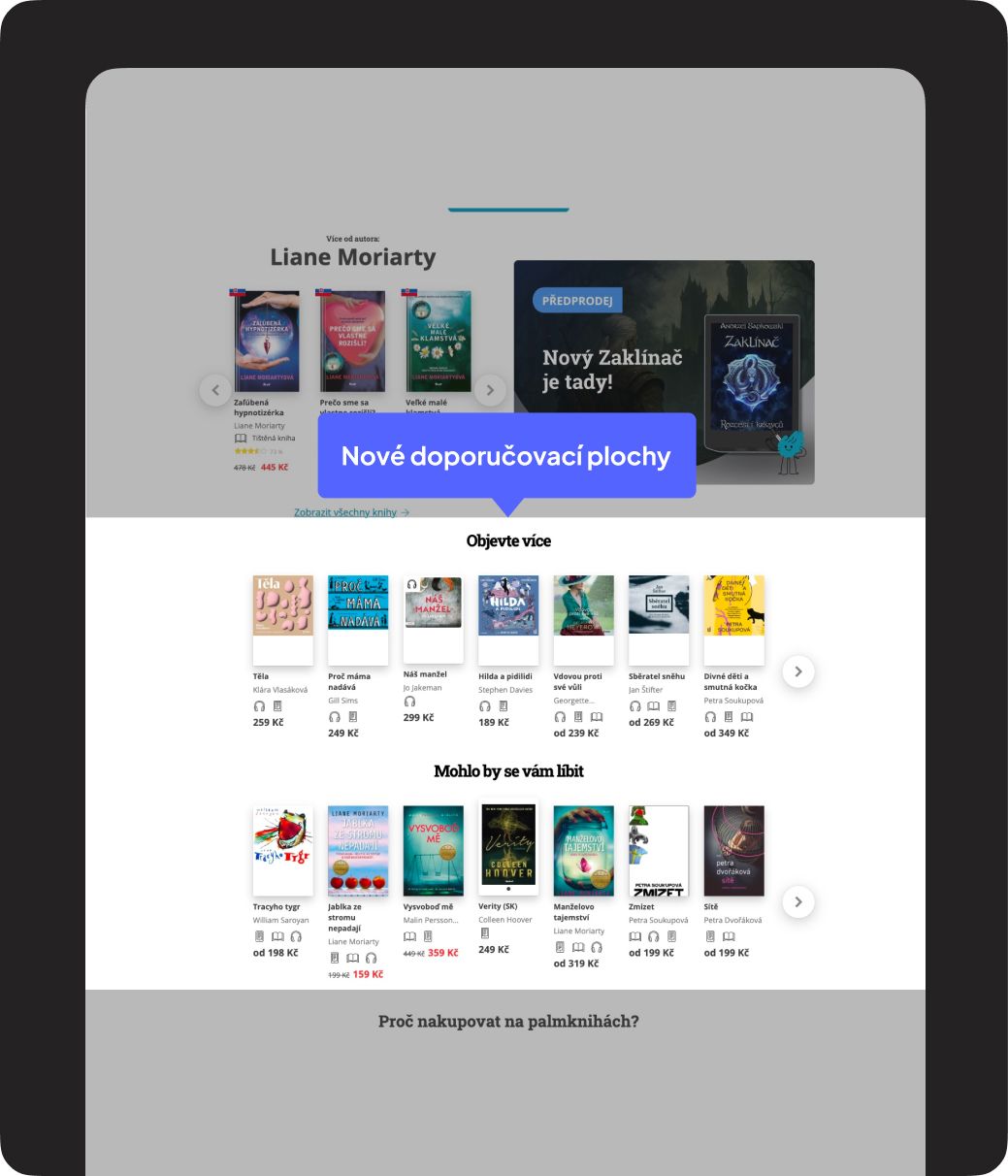 Současně neměly Palmknihy k dispozici adekvátní reporting a tedy neměly přehled o výkonnosti konkrétních rekomendačních ploch. Drhnula i spolupráce na úrovni customer support.