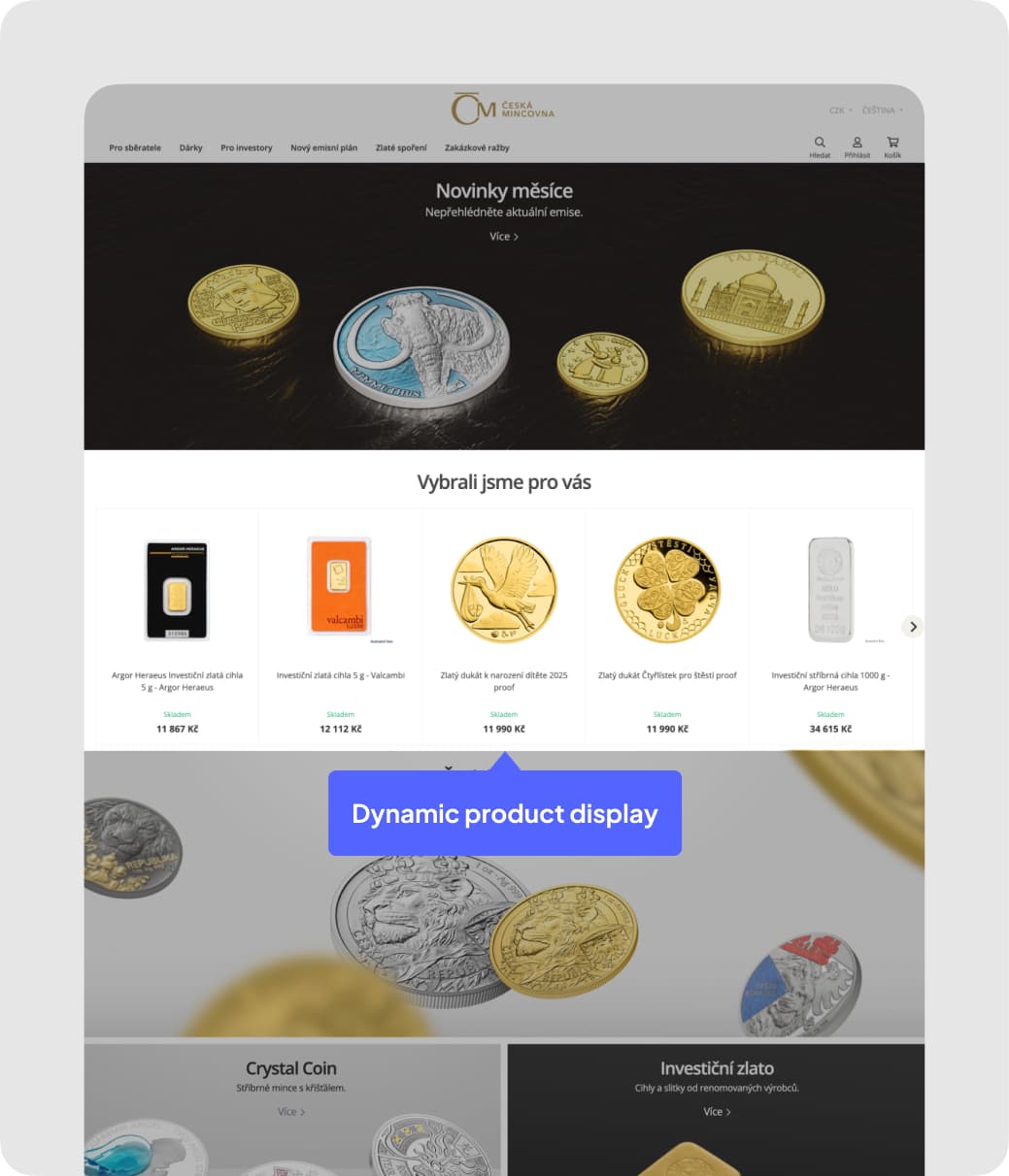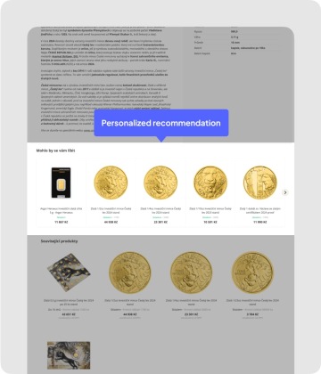 Historically, the Czech Mint has not used recommendation areas on its website. There was a fear that they might distract users from the direct purchase journey and overall reduce, for example, the average order value.